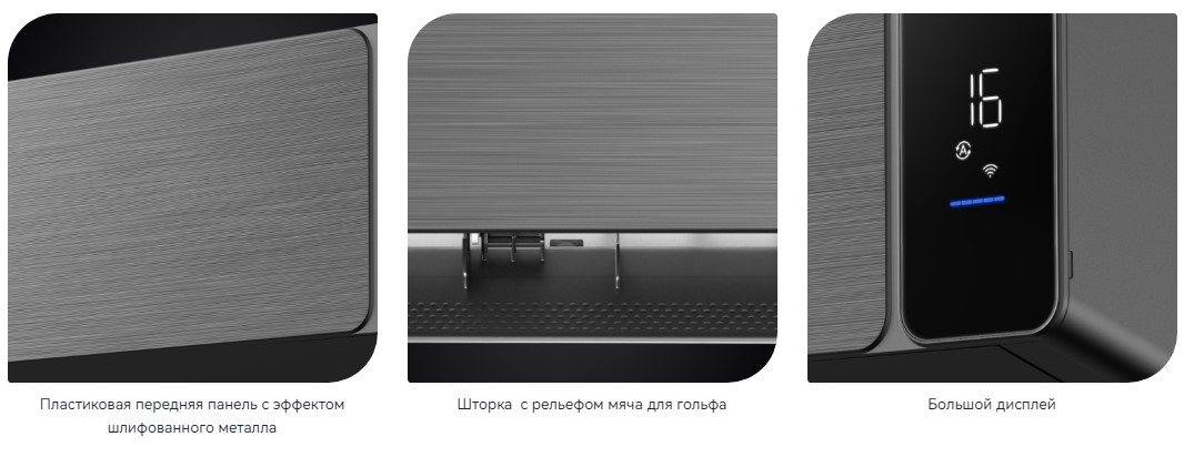 Шторка кондиционера имеет рельеф, напоминающий мяч для гольфа, — такое творческое конструктивное решение делает обдув мягче.