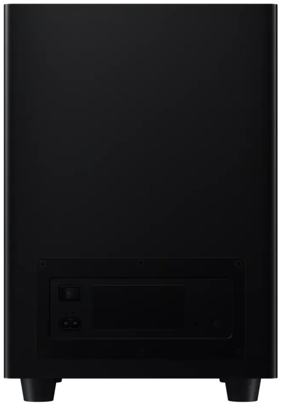 Система построена по схеме 2.1: два фронтальных динамика в панели и отдельный сабвуфер. Совокупная мощность достигает высокой громкости и уверенно заполняет звук в комнате. Сабвуфер обеспечивает плотный, насыщенный низкочастотный диапазон, что делает фильмы и музыку более выразительными. Поддержка Dolby Audio и DTS Virtual:X повышает объёмность звучания: голоса становятся чётче, эффекты — реалистичнее, а сцена — шире. Благодаря этому саундбар отлично подходит как для фильмов, так и для игр и концертных записей.