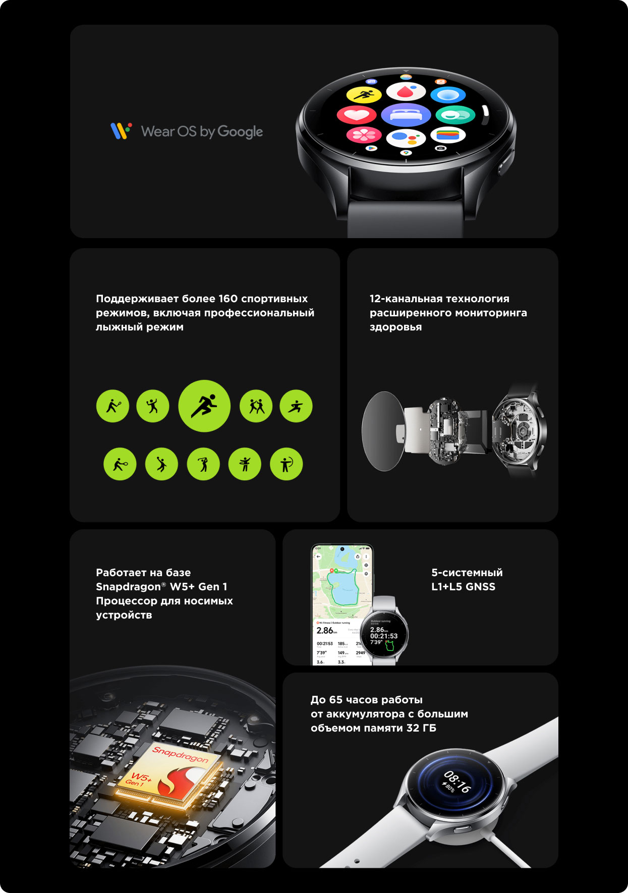 Особенностиоперационная система Wear OS, процессор Snapdragon W5+ Gen1