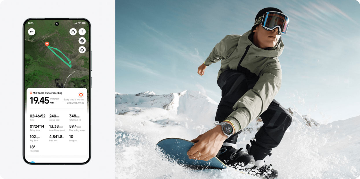 Четкое отображение данных о вашей производительности и отслеживание местоположения Благодаря новому профессиональному режиму катания на лыжах вы можете фиксировать и записывать расстояние и среднюю скорость для каждого скольжения. Узнайте больше на странице результатов и даже получите свою «Карту лыжной трассы».