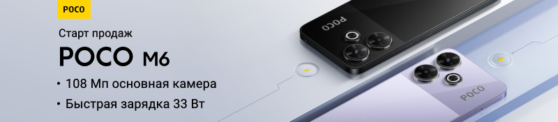 Новый бюджетный смартфон с потрясающими характеристиками! Poco M6 оснащен камерой с разрешением 108 МП и трехкратным зумом, технологией объединения пикселей 9-в-1 и селфи-камерой на 13 МП, 6,79-дюймовым дисплеем FHD+ с частотой обновления 90 Гц. Сердце смартфона — процессор MediaTek Helio G91 Ultra, графический процессор Arm Mali-G52 MC2. Poco M6 сертифицирован по стандарту IP53, имеет утонченную конструкцию толщиной 8.3 мм и батарею на 5030 мАч с быстрой зарядкой на 33 Вт.